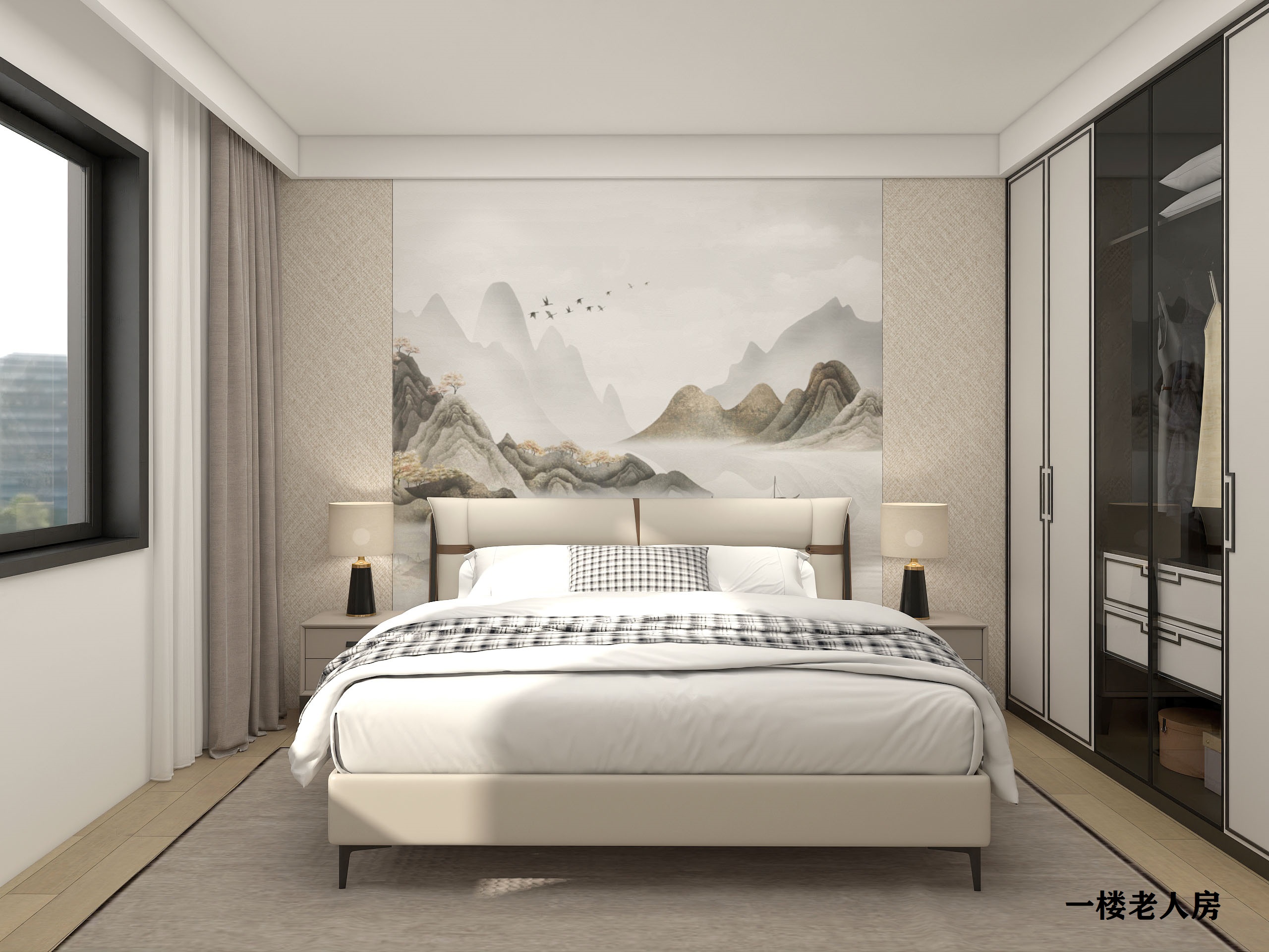 新中式風格家居既有傳承中華傳統美感的特點,也符合現代都市家庭多數風格的定位,整個室內采用對稱式的布局方式,背景墻面以山川入畫,兩邊輔以白紋墻布色護墻,氣韻流轉,淡雅脫俗,既傳承中式之底蘊,又盡顯現代高雅質感。集古典和現代美于一身,有古韻但不古板,增添出整體性和美觀性,從而達到并展現出優越的東方意蘊質感,這樣老人住著才舒適。
