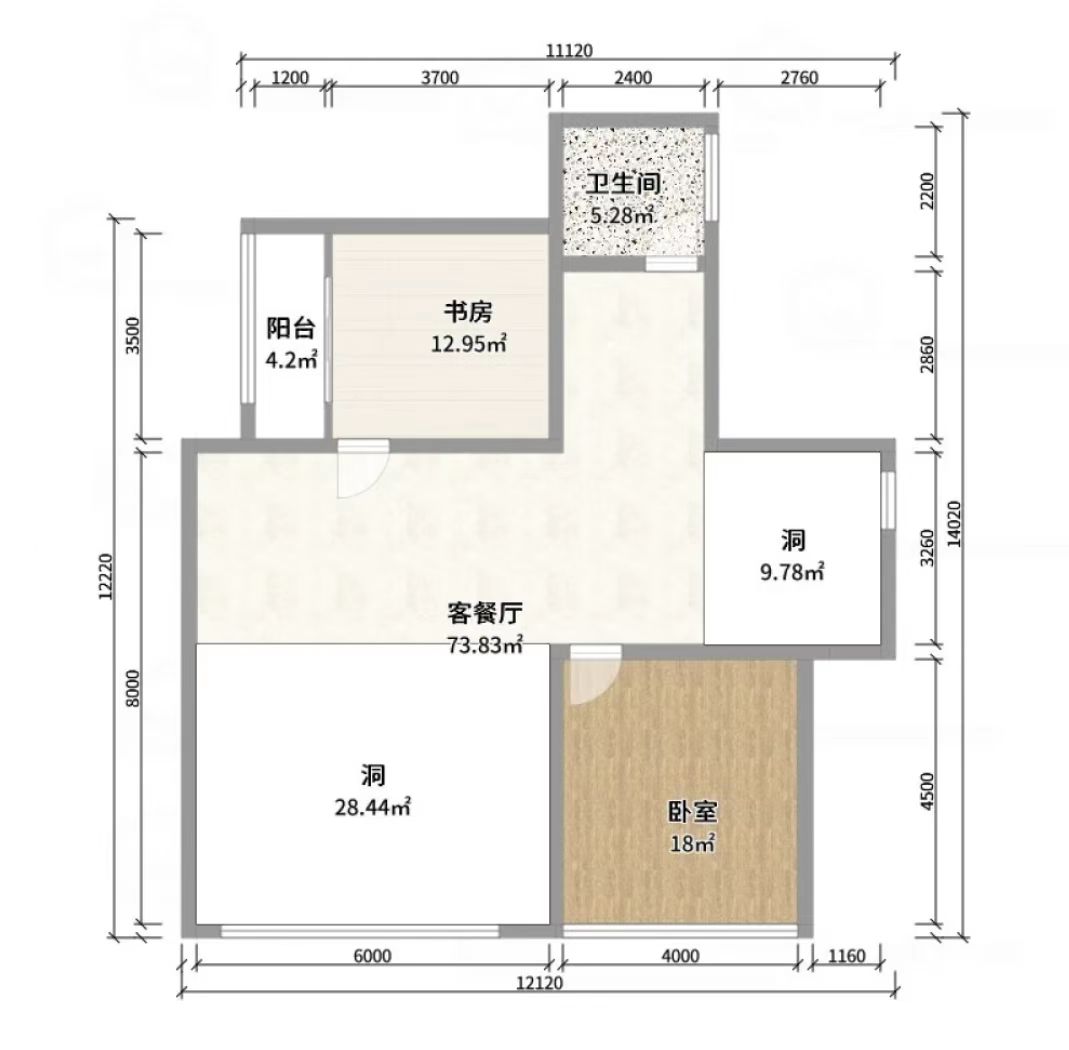 臥室床頭背景墻使用淺色木紋搭配絲絨布紋墻板,低飽和度的拼色設計,增加一幅藝術畫飾,打破單調感同時營造一定的藝術氣息。