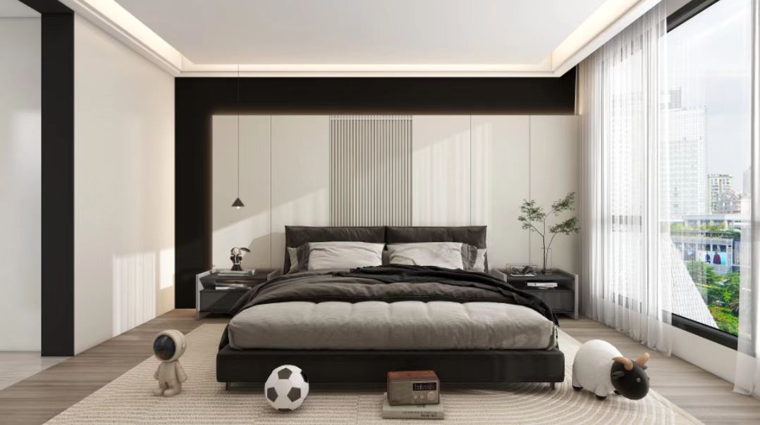 格柵可以很好的與臥室背景墻相融