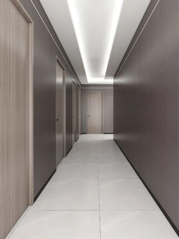 賓館過道整體采用集成墻板搭配金屬線條設計,用錯層發光邊線來增強層次感,使得空間具備良好照明的同時,又突出了設計感~酒店客房以現代簡約的風格為主,在設計中加入了許多簡潔的線條設計,豐富了空間層次!走進房間,就給人以寬敞、舒適、干凈的感受。