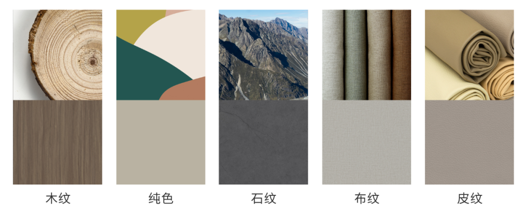 黃晶大板表面飾面具有:木紋、石紋、布紋、皮紋、純色等多種效果,能滿足不同空間的色差、質感設計搭配運用。
