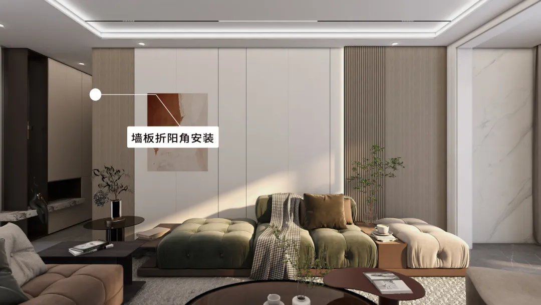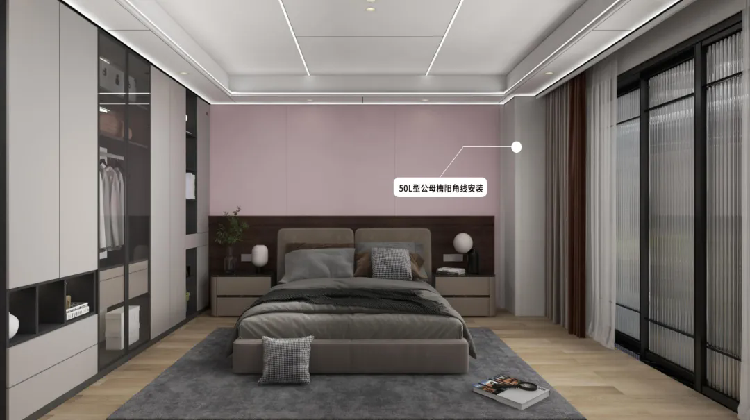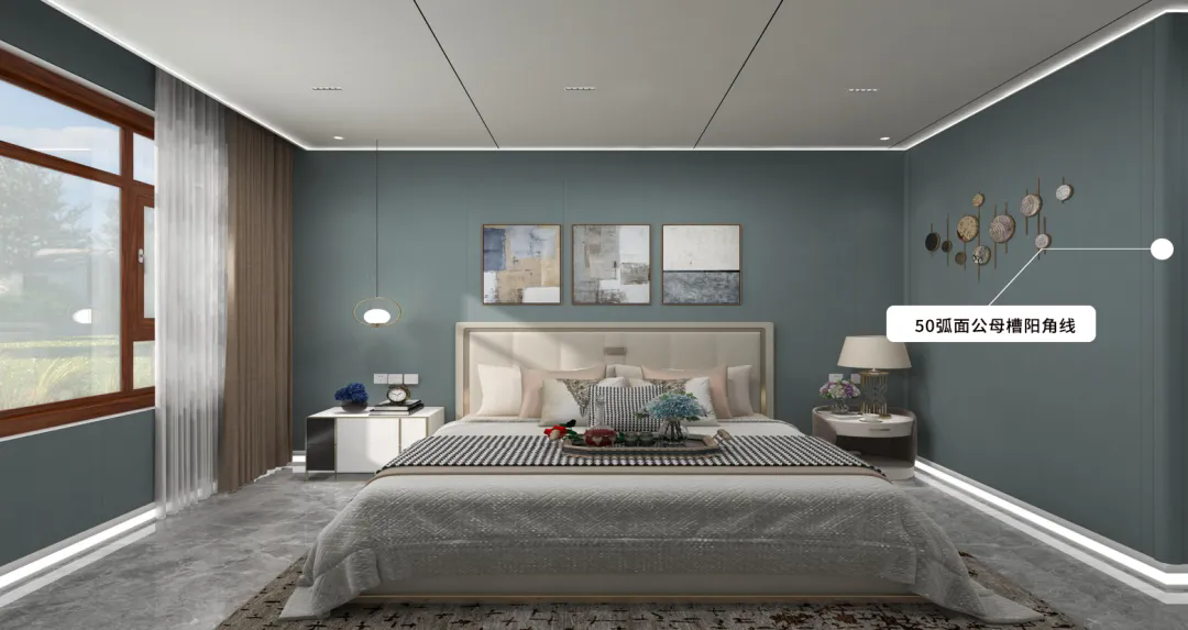 針對墻板雙母槽設計,形成一個有設計感的弧面陽角,有效防止日常活動中磕碰受傷,不僅美觀,而且實用。