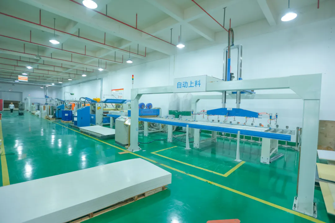 好產品當然離不開好的設備,星雅圖擁有集成墻板全產業鏈生產設備,多條墻板基材擠出線,滿足各種墻板生產需求?;酿B生區,72小時養生,確保品質。墻板包覆車間,進口西班牙巴貝蘭包覆設備,品質更優、環保更有保證。業內先進的全自動大板平貼包覆線、六工位全功能板材開槽機,3D/5D數碼打印,個性化定制背景墻。