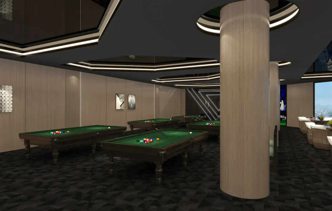 該臺球俱樂部定位高端休閑社交空間,客戶希望墻面設(shè)計既能呼應(yīng)臺球運動的復(fù)古格調(diào),又能融入現(xiàn)代科技元素。我們源頭工廠從需求出發(fā),選用仿天然木紋的環(huán)保板材,搭配嵌入式LED燈帶系統(tǒng),通過模塊化安裝快速完成墻面施工,既節(jié)省工期,又實現(xiàn)“所見即所得”的落地效果。