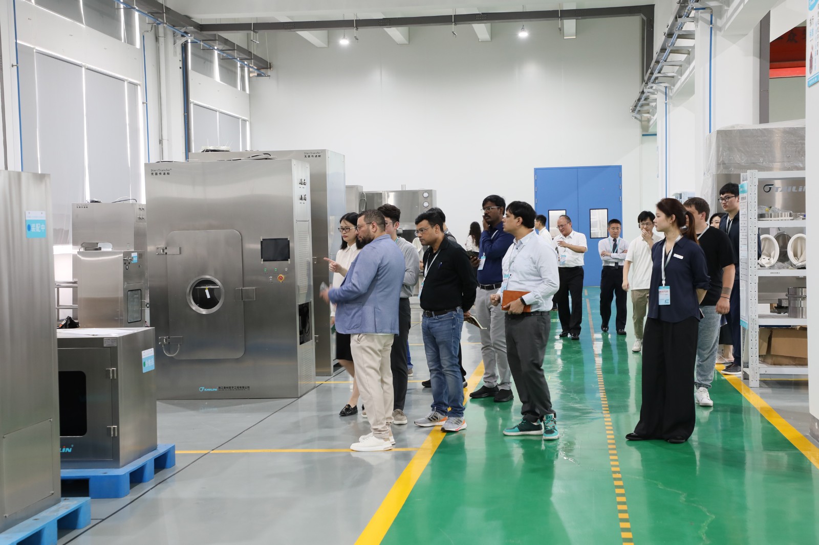 創(chuàng)新與高效的交響,離不開匠心的堅(jiān)守。在工廠參觀環(huán)節(jié),海外客戶實(shí)地深入了解無菌隔離技術(shù)、細(xì)胞與基因制備生產(chǎn)、智能微生物檢測、核藥藥品無菌制備、無菌檢測、微生物檢測、膜過濾等領(lǐng)域重點(diǎn)產(chǎn)品生產(chǎn)制造的各個(gè)環(huán)節(jié)。在這里,領(lǐng)先的自動化產(chǎn)線、先進(jìn)的加工設(shè)備、綠色高效的制造體系不斷映入眼底,全方面、多維度展示著泰林生物對產(chǎn)品全生命周期的嚴(yán)格把控。海外客戶對泰林生物規(guī)?;闹圃鞂?shí)力贊不絕口,更堅(jiān)定了對泰林生物旗下產(chǎn)品的信心,期待后續(xù)對接更多項(xiàng)目的合作。
