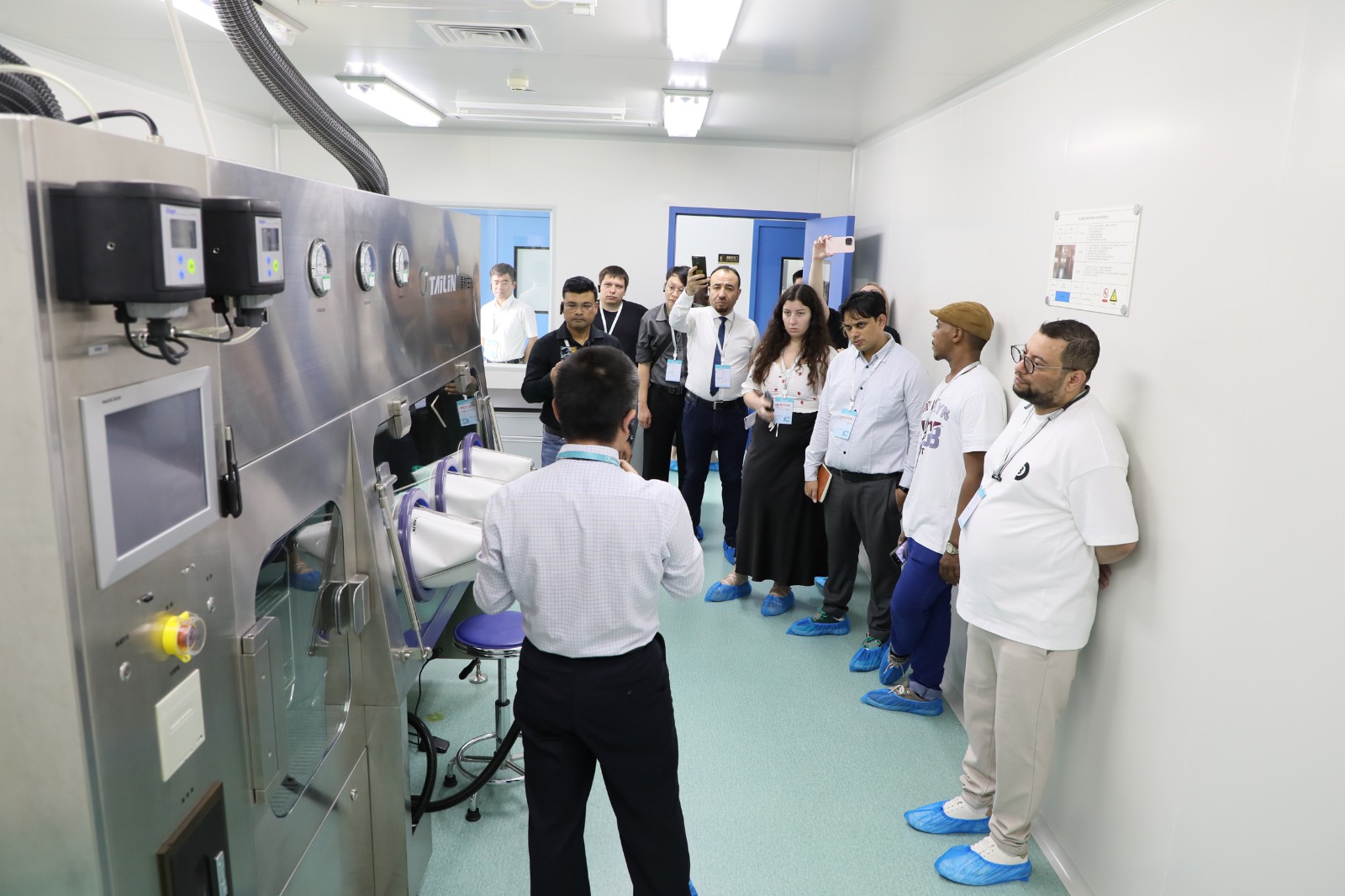 海外客戶在泰林生物相關(guān)負(fù)責(zé)人以及專業(yè)技術(shù)人員的陪同下, 先后參觀了泰林醫(yī)學(xué)工程園區(qū)和泰林生命科學(xué)園區(qū)。在制藥設(shè)備生產(chǎn)區(qū)、細(xì)胞制備區(qū),海外客戶看到了泰林生物在制藥裝備加工制造技術(shù)上的強(qiáng)大交付能力;在實(shí)驗(yàn)中心、膜技術(shù)生產(chǎn)車間、微檢耗材生產(chǎn)區(qū)、醫(yī)學(xué)工程創(chuàng)新產(chǎn)品展示區(qū)、生命科學(xué)展廳產(chǎn)品區(qū)等地,海外客戶看到了泰林生物豐富的產(chǎn)品系列和解決方案以及背后雄厚的研發(fā)實(shí)力。