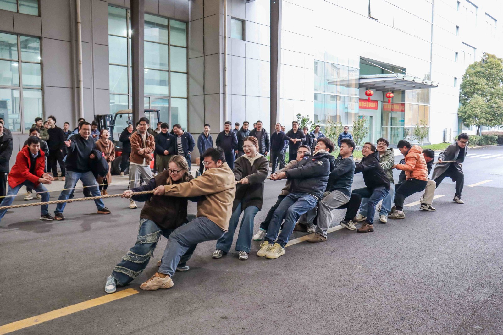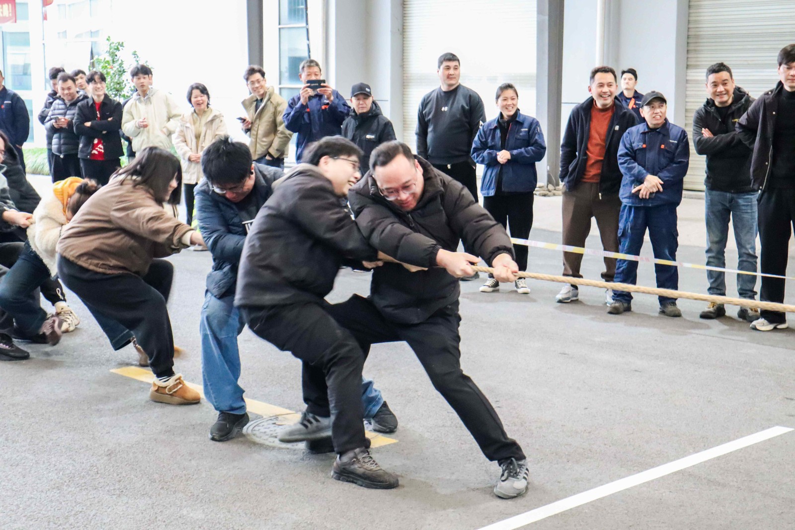 哨響,勁發(fā)!作為延續(xù)多年的開(kāi)工傳統(tǒng),拔河比賽瞬間點(diǎn)燃全場(chǎng)熱情。賽場(chǎng)之上,泰林人穩(wěn)扎馬步、全力傾身,緊握麻繩凝聚全身力量;賽場(chǎng)之外,加油吶喊聲此起彼伏,響徹園區(qū)。麻繩之上紅綢的每一次擺動(dòng),都緊緊牽動(dòng)著所有人的心。