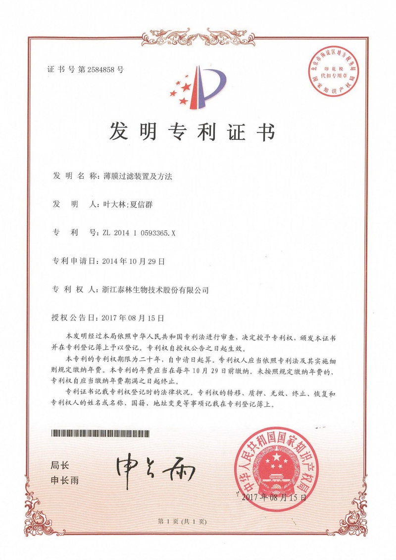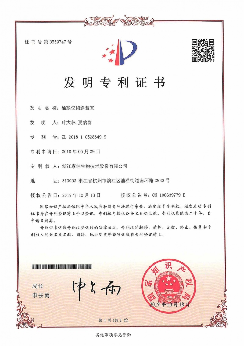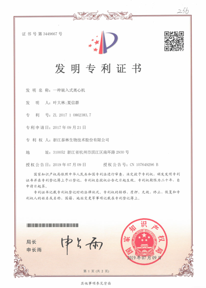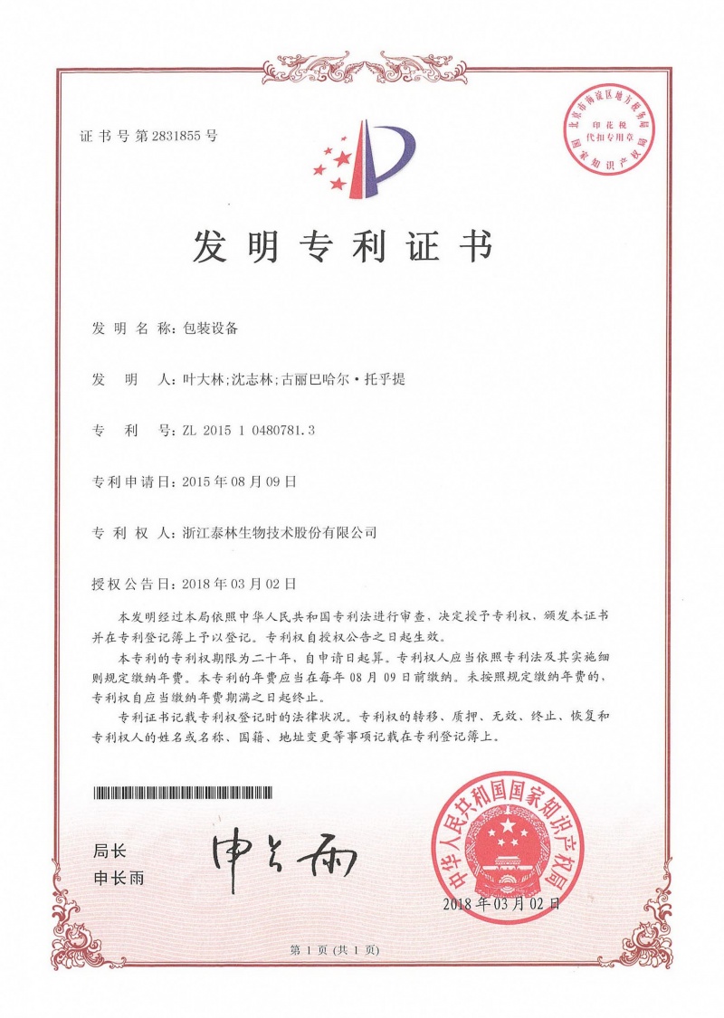 泰林生物擁有國家專利450余項,其中發(fā)明專利63項。