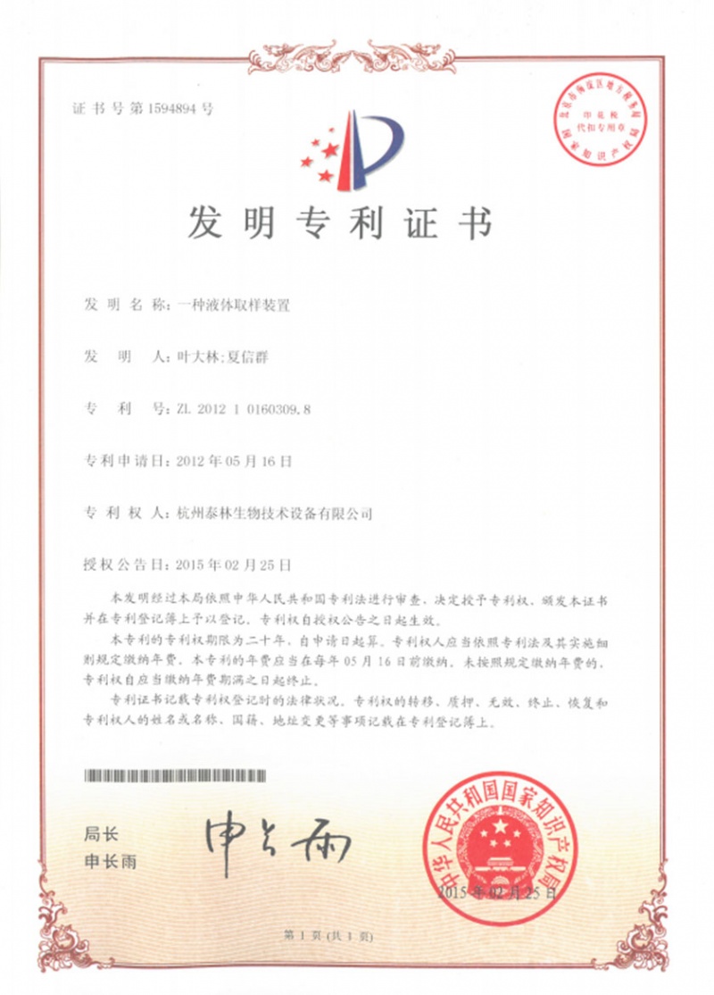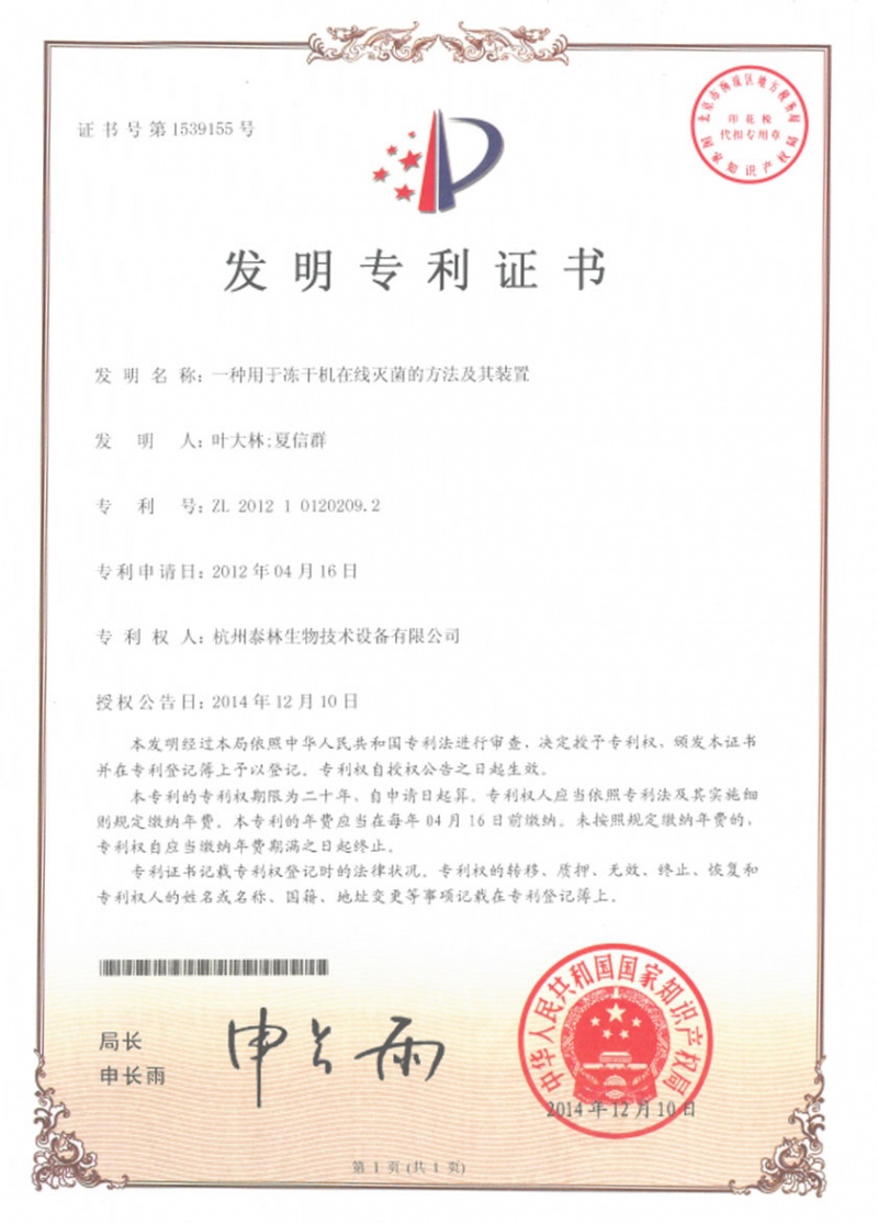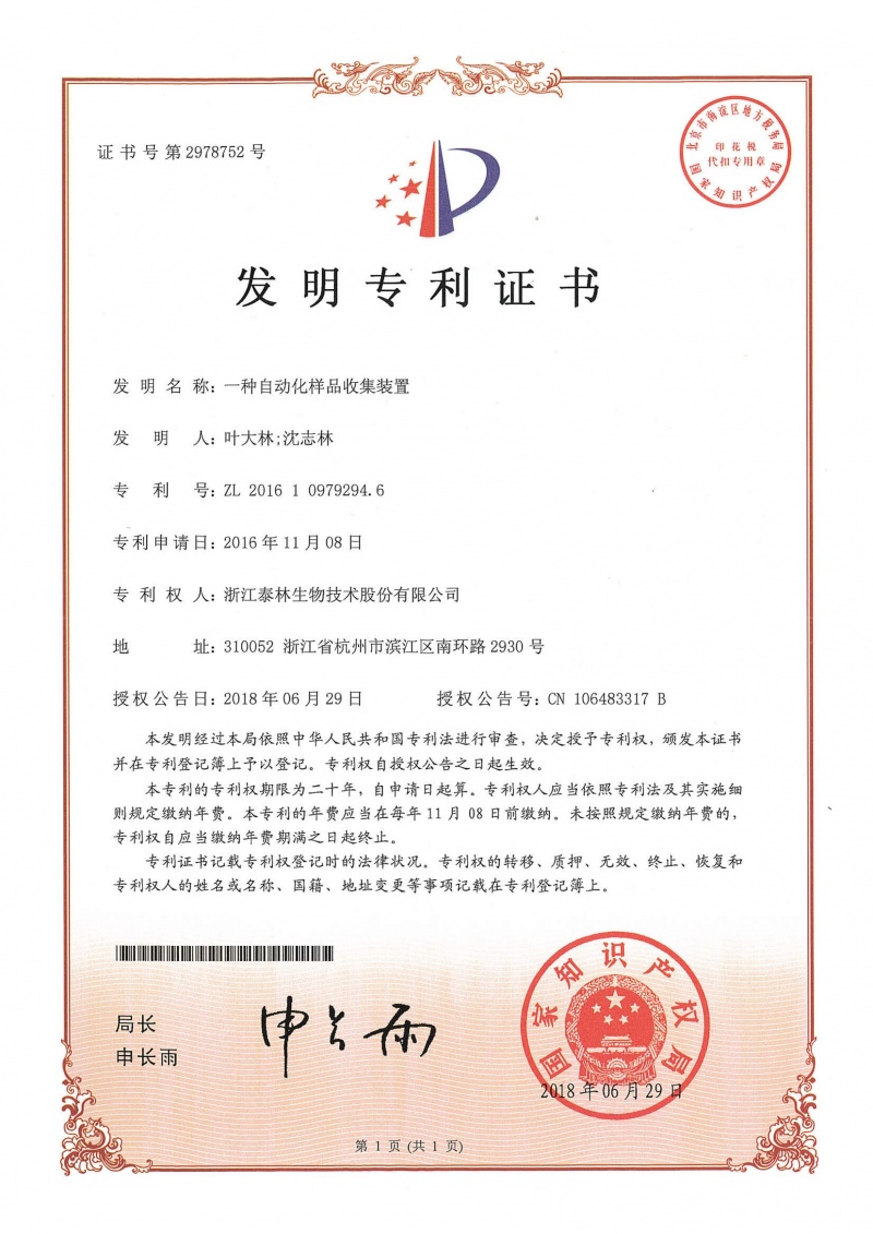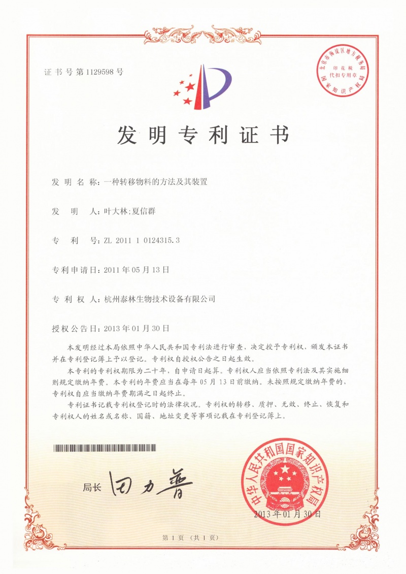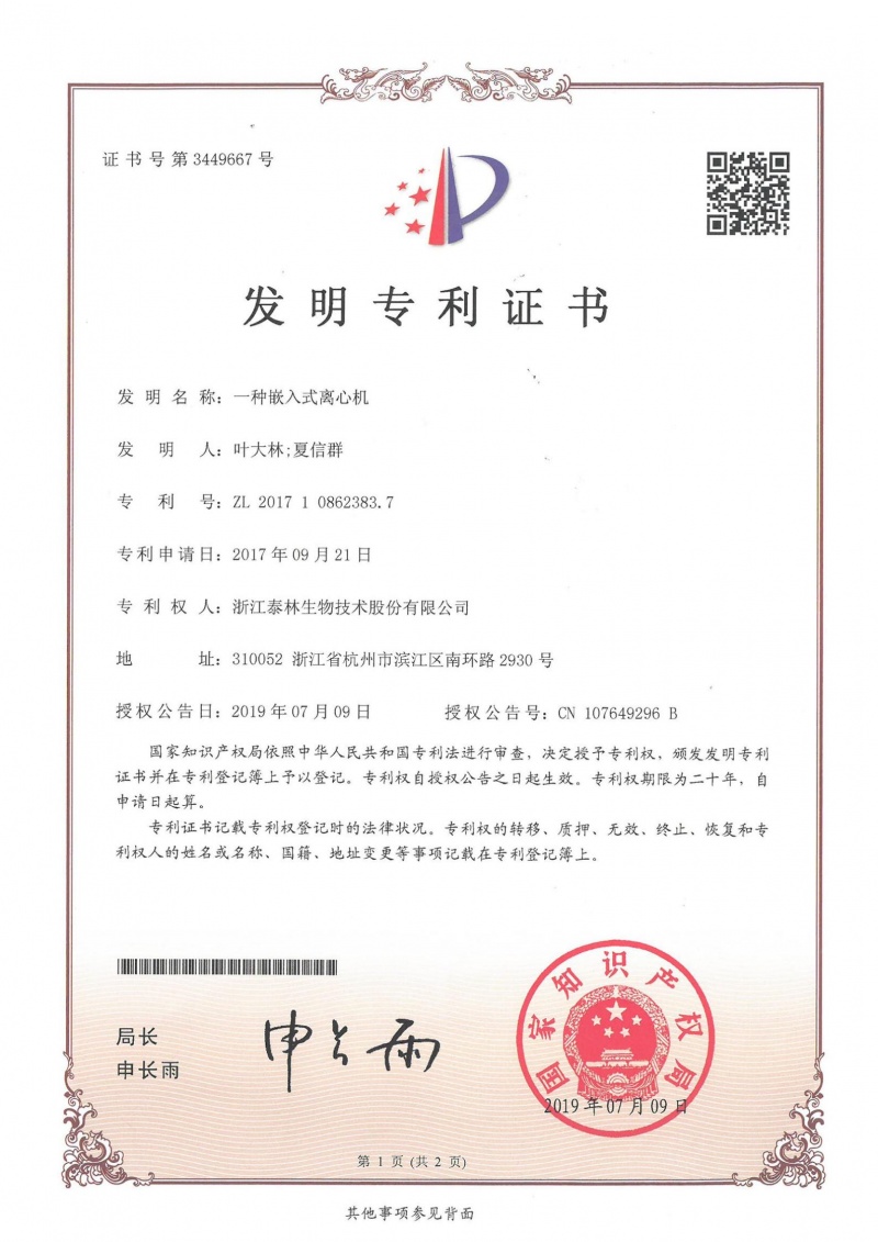 泰林生物擁有國家專利450余項,其中發(fā)明專利63項。